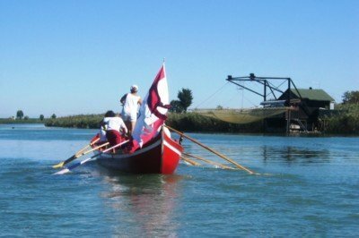 Sailing excursion in boat with [typical Venetian] lug-rigged sails